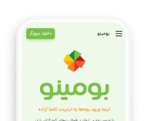 اینترنت مناسب برای فرزندان شما. با «بومینو» میتوانید فعالیتهای کودکتان را در دنیای اینترنت، مدیریت کنید تا بچهها به محتوای مناسب سن خودشان دسترسی داشته باشند.